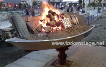 . Barquita preparada para asar espetos. . Sardinas espetadas en cañas.. . . . . . . . .También otras especies espetadas.